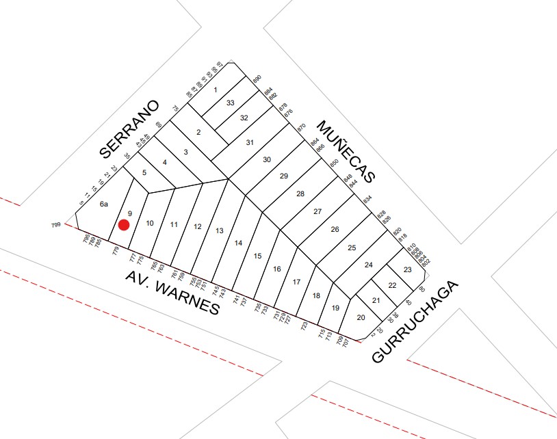 Terreno de 9 m de frente en warnes 779 que consta de 9 x 26 con una superficie total de 215 mts lo que hace la posibilidad de construir 1200 m2 vendibles - ubicado en zona estrategica de villa crespo dada la cantidad de comercios , bancos , instituciones publicas y todos los medios de transporte que dispone y en una zona que se viene proyectando como una alta densidad poblacional de clase alta lo que nos permite reconocer que se pueda construir en alta categoria con un muy buen valor por m2 comercializa migliorisi de corrientes 5500 srl profesional responsable diego f migliorisi cpi263 f3891 se deja constancia que las caracteristicas, medidas, expensas y superficies consignadas son aproximadas, sujetos a verificación y/o ajuste. El precio del inmueble puede ser modificado sin previo aviso. Fotos de carácter no contractual. Las unidades publicadas están sujetas a disponibilidad.